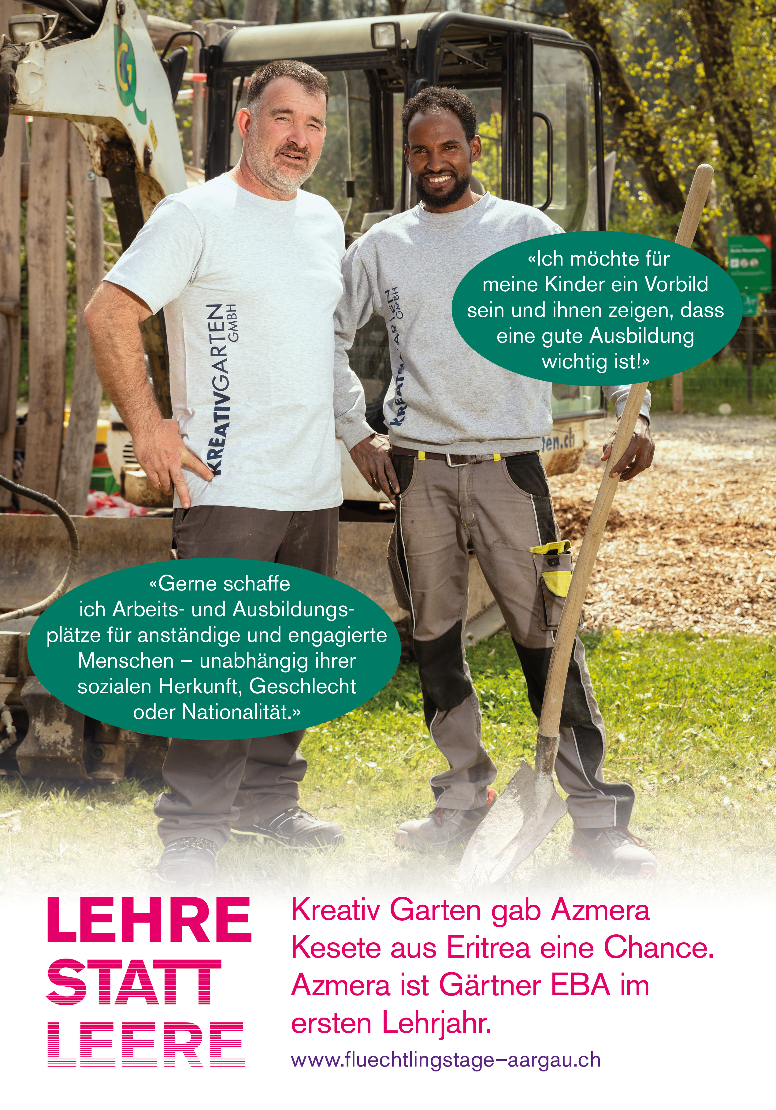 Gärtner, Velomechaniker, Köchin, Metzger, Pharmaassistentin: Immer mehr geflüchtete Menschen machen eine Lehre. Diese positiven Nachrichten sind das Thema des Flüchtlingstags 2021 im Aargau. Erstmals werden Aktionen an sieben Standorten im Kanton stattfinden. In einer Plakatkampagne kommen geflüchtete Lernende und ihre Ausbildnerinnen zu Wort.