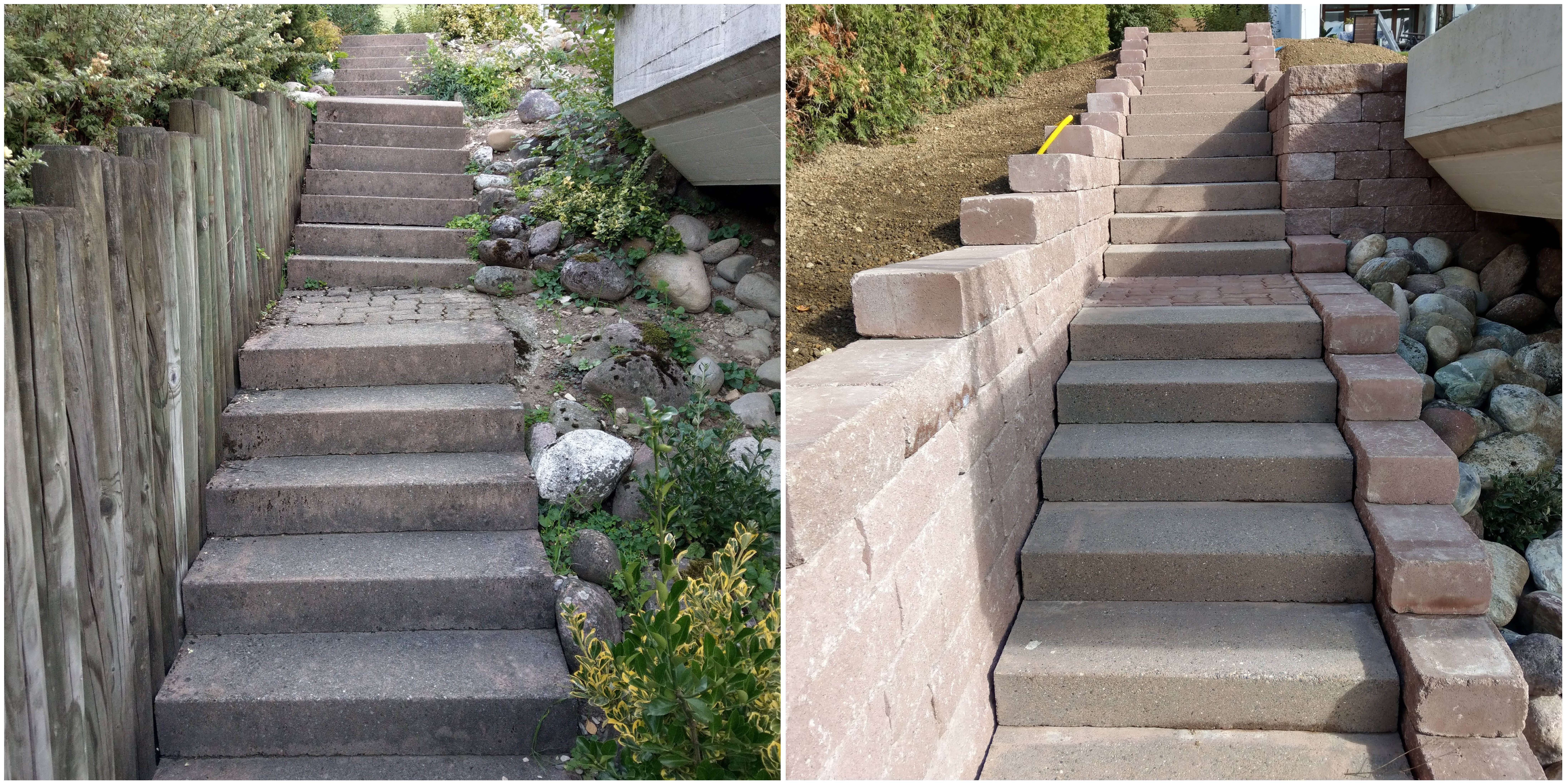 Hier durften wir unter anderem die Treppe sanieren und die Palisaden durch Mauern ersetzen