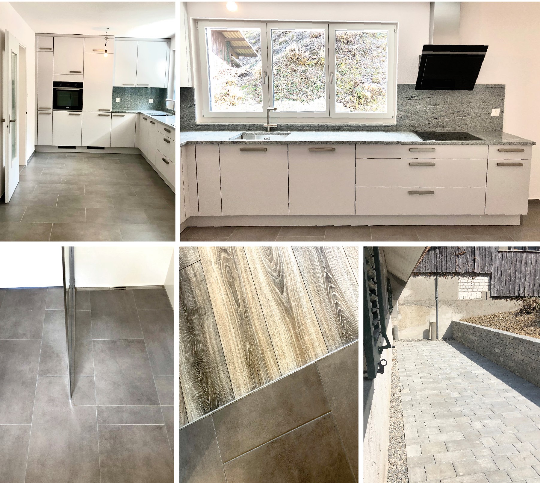 Wir verlegen nicht nur Gartenplatten sondern auch Vliesen im Entrée- & Wohnbereich, in Nasszellen und in der Küche.